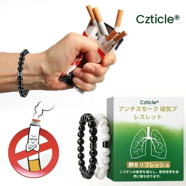 ステップ1: Czticle® AntiSmoke 磁気ブレスレットを開封します。(社会的な喫煙者から毎日喫煙するヘビースモーカーまで、すべての喫煙レベルに対応しています。)