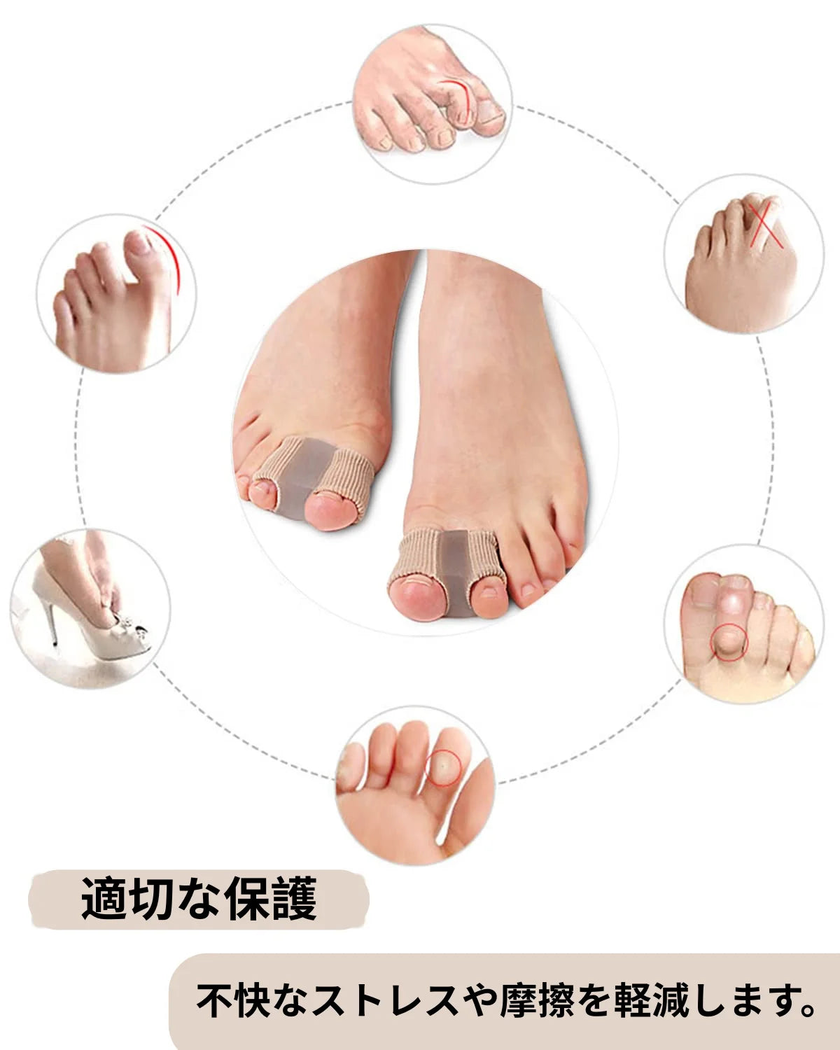 最適な効果を得るために、この足指矯正具をゆったりとした快適な靴で着用するか、自宅で休んでいる時に使用することをお勧めします。継続的に使用することで、不快感を減らし、健康で痛みのない足を促進することができます。